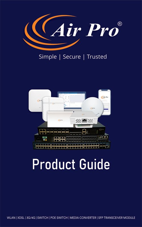 AirPro is a renowned name in the networking industry, offering an extensive lineup of Wi-Fi solutions, access points, PoE switches, and fiber access systems. With its in-house R&D division, AirPro develops advanced wired and wireless systems that deliver powerful performance,seamless connectivity, and long-term reliability.